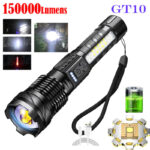 150000 Lumens GT10 White Laser Zoom Flashlight with 2600mAH Battery Type-c Rechargeable Tactical Torch with COB Side Light
