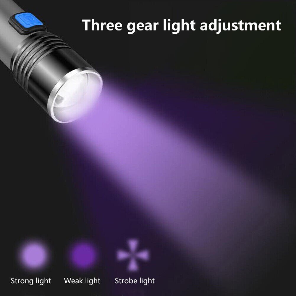 395nm Rechargeable LED UV Flashlight Zoom Mini UV Black Light Pet Urine Stain Detector Scorpion Hunting