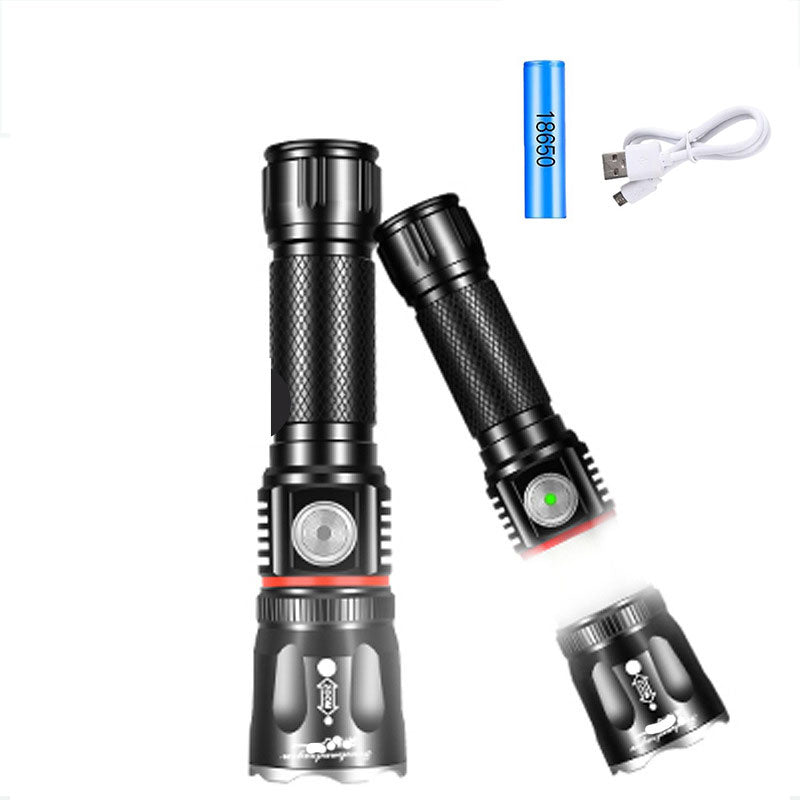 T6 100000LM Zoom Double Light Aluminum Alloy Flashlight Hidden 360 Degree COB Surrounding Soft Light USB Rechargeable Large Capacity Lithium Battery Bulbs life 100.000 hours